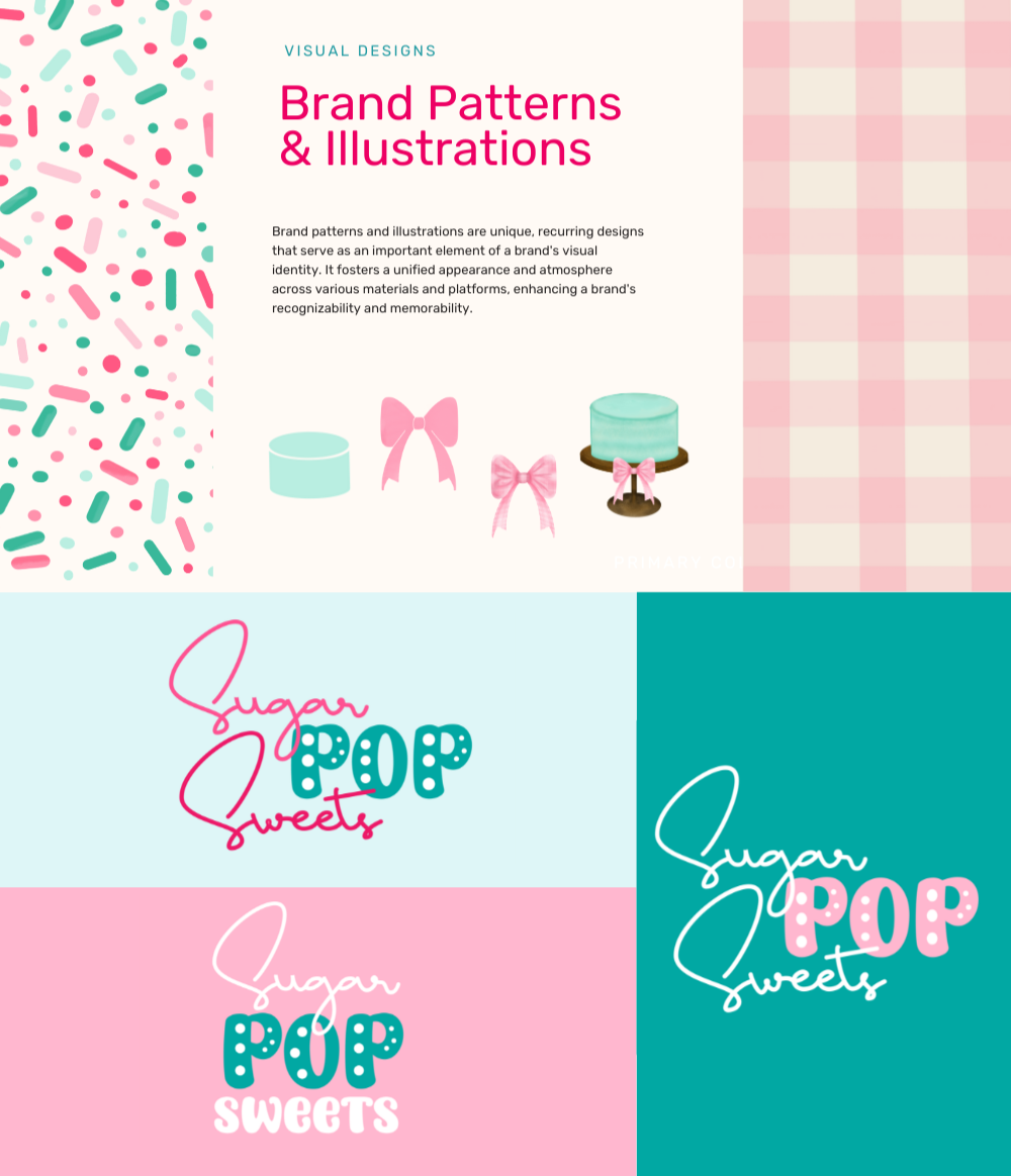 Danicia Lee-Hanford specializes in custom handheld confections, including cake sicles, cake pucks, cupcakes, cookies, brownies, and chocolate-dipped fruits. My client's brand required a mature yet soft illustrative design featuring shades of pink, sprinkles, and gingham patterns.