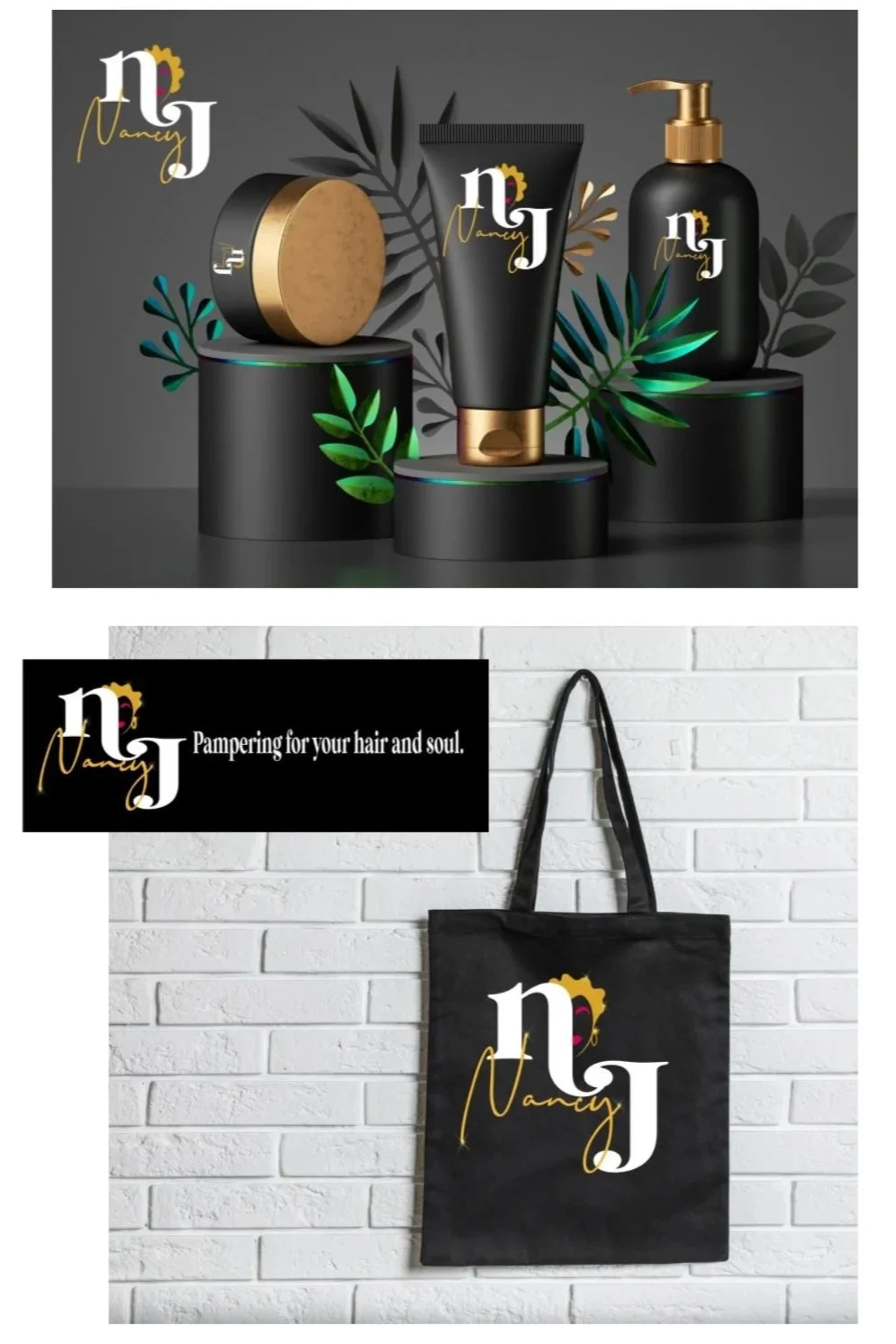Nancy J is a skilled Master Cosmetologist with over 30 years of experience in the industry. The brand aims for a modern and luxurious design for its new product line that resonates with the personality of its target audience. The concept features a sketch of the woman behind the brand, highlighting her personality through her earrings, sassy short haircut, and favorite fuchsia lipstick. Additionally, the logo's typography incorporates her signature alongside a modern yet stylish font.